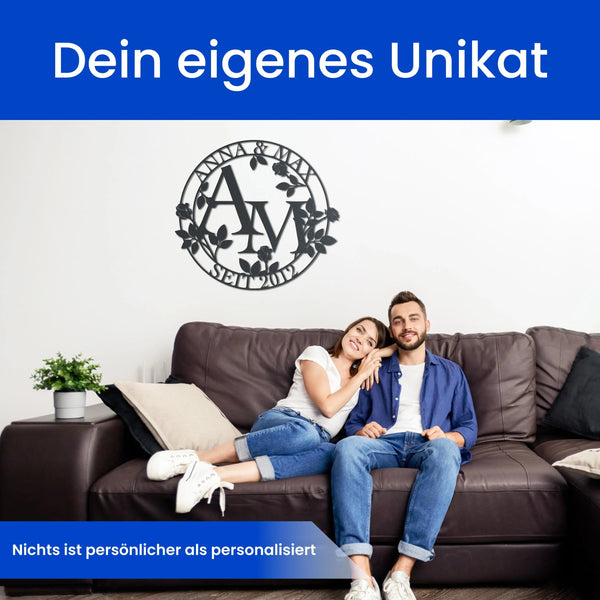 Dank der robusten Verarbeitung bleibt das Schild dauerhaft geschützt und rostfrei, besonders in pulverbeschichteten Farben – eine perfekte Geschenkidee für Familien, Paare oder als Andenken für besondere Anlässe.