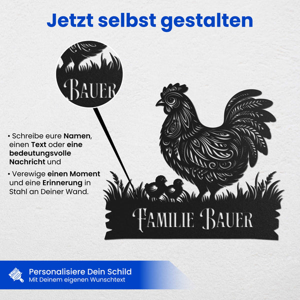 Dank der robusten Verarbeitung bleibt das Schild dauerhaft geschützt und rostfrei, besonders in pulverbeschichteten Farben – eine perfekte Geschenkidee für Familien, Paare oder als Andenken für besondere Anlässe.