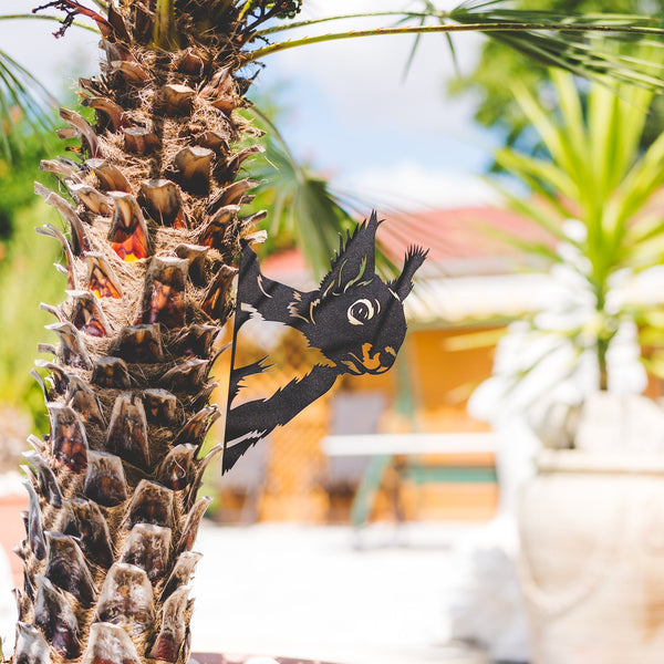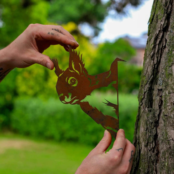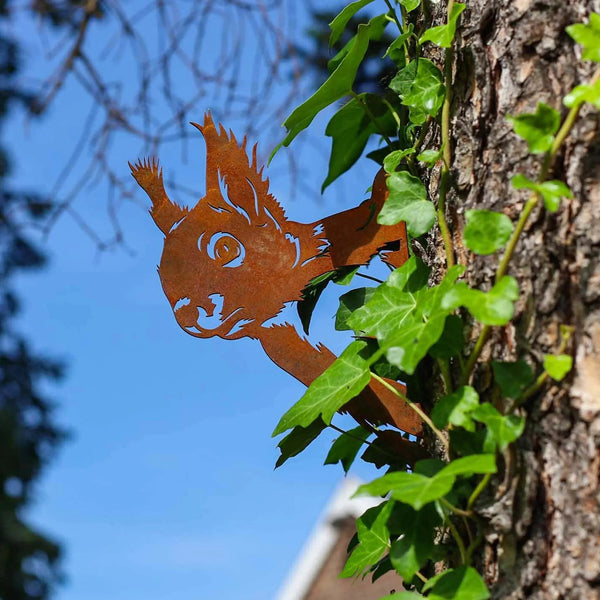 Notre tuteur d'arbre Curious Squirrel est fabriqué en acier Corten de haute qualité ou en noir - un détail charmant qui ajoute une touche ludique et naturelle à votre jardin ou à votre arbre.